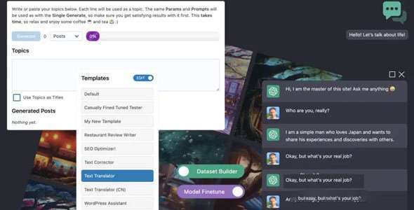 هل أنت مستعد للارتقاء بموقع WordPress الخاص بك إلى المستوى التالي باستخدام الذكاء الاصطناعي؟ باستخدام AI Engine، يمكنك بسهولة إنشاء المحتوى، وتجربة مجموعة متنوعة من المهام مثل الترجمة والتصحيح في ملعب الذكاء الاصطناعي الممتع الخاص بنا، وإضافة روبوت دردشة على طراز ChatGPT إلى موقع الويب الخاص بك، وتتبع استخدامات الذكاء الاصطناعي، ووضع الحدود، وما إلى ذلك!
