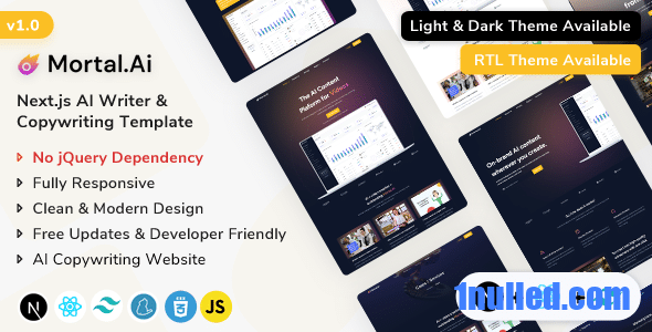 Mortal.Ai هو سريع الاستجابة قالب js التالي لكتاب الذكاء الاصطناعي ومواقع كتابة النصوص. لقد قمنا بتصميم هذا القالب لموقع الويب الجديد الخاص بكتابة محتوى الذكاء الاصطناعي بالطريقة التي تريدها. لذلك، إذا كنت ترغب في إنشاء موقع ويب لكتابة محتوى المدونة، ونسخة الإعلان الرقمي، والكتابة الفنية، ومحتوى تحسين محركات البحث، الصفحة المقصودة ينسخ، وسائل التواصل الاجتماعي المحتوى، البريد الإلكتروني تسويقونسخة موقع الويب ونسخة التسويق ونسخة التجارة الإلكترونية ووصف المنتج و التسويق عبر البريد الإلكتروني إذن سيكون قالب Mortal.Ai Next js هو الخيار الأفضل لإنشاء موقع الويب الخاص بك.
